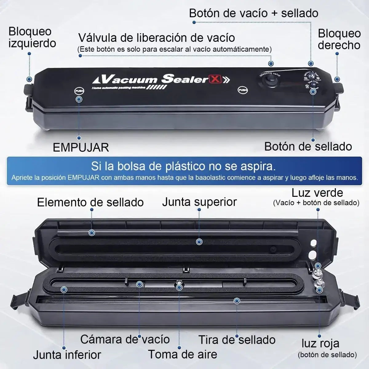 🌿 Con este dispositivo, las carnes y pescados se mantienen jugosos, con sabor auténtico, sin olores extraños; los quesos y embutidos ni se resecan ni desarrollan moho; las porciones listas para la semana (“meal prep”) quedan listas para disfrutarse, sin tener que cocinar de nuevo; y tus snacks favoritos no pierden crujido ni textura. Todo esto con un uso tan sencillo que basta un botón para activar el sellado al vacío, sin complicaciones.